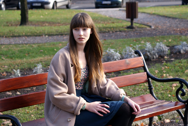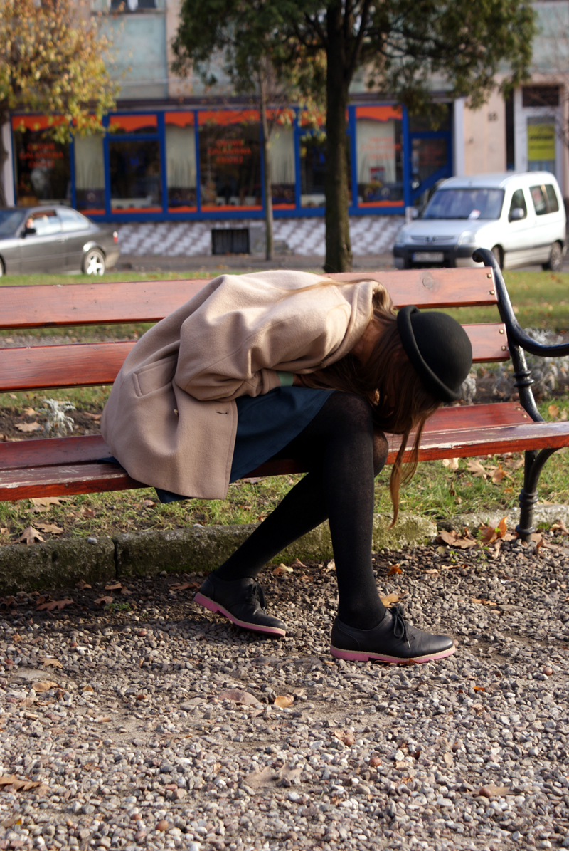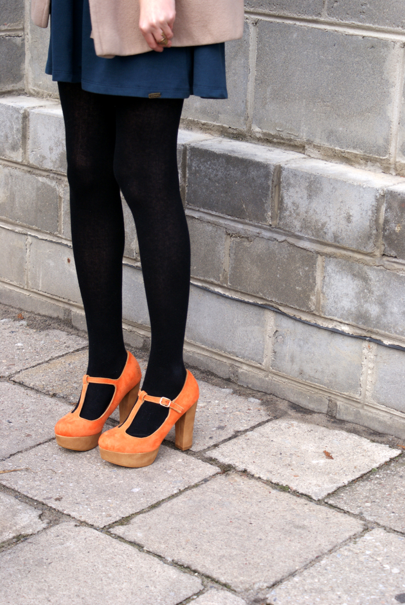 (wearing: orange high-heels/Deichmann flats, numph skirt, bershka bodysuit, primark tights, sh cardigan, sh coat, NewYorker hat)