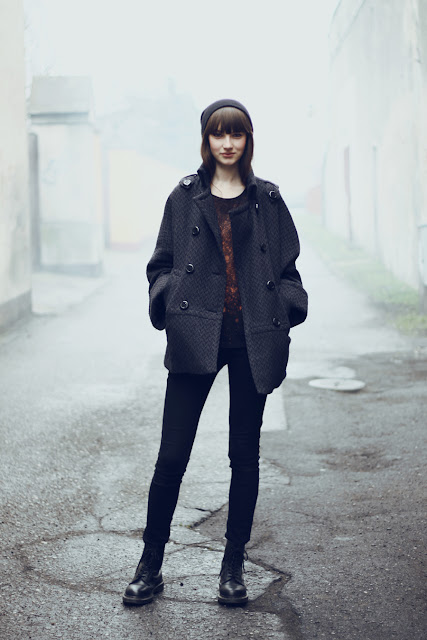 (wearing: h&m jeans, dr.martens boots, DIY tshirt, cameiou coat)